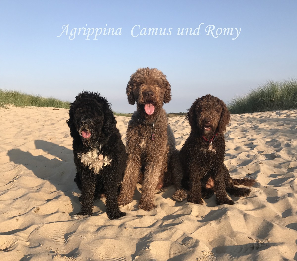 Emma , Camus und Pina. Drei wunderschöne Vertreter ihrer Rasse. Und wer weiß, vielleicht gibt es im nächsten Jahr auch wieder Fotos von drei Barbets und eine sitzt dann dort mit ihren Eltern.