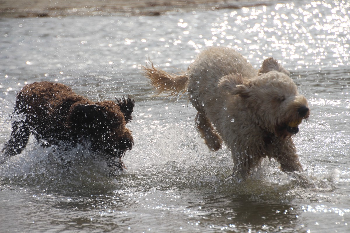 02.04.19 / Heute Mittag am See. Romy habe ich am Sonntag geschoren. Lustig, Man sieht, dass es Camus warm ist. kein Wunder , Mama und Romy waren ja auch im Wasser.